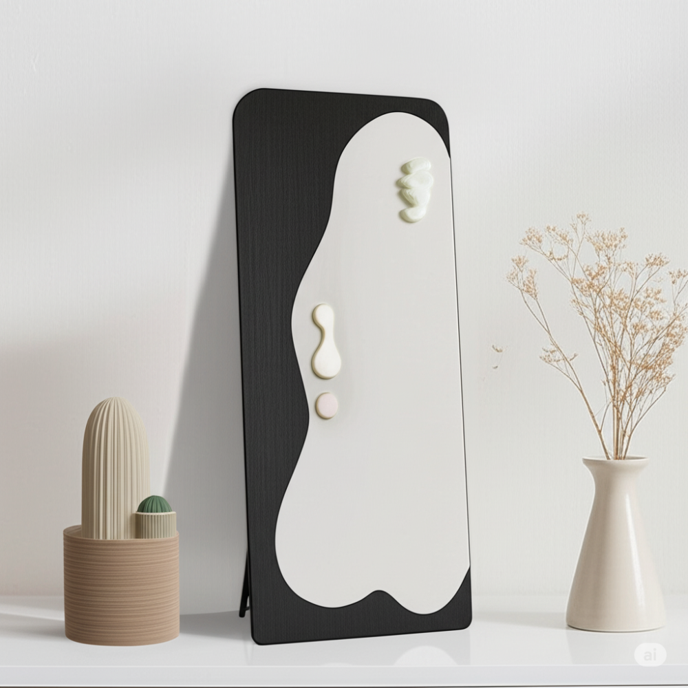 أضف لمسة من الأناقة والجمال إلى مساحتك مع هذه المرآة الحائطية العصرية. يتميز تصميمها بالبساطة والأناقة، حيث يتناغم الإطار الخشبي الأنيق مع شكل المرآة الانسيابي، مما يضفي لمسة فنية فريدة على أي جدار.