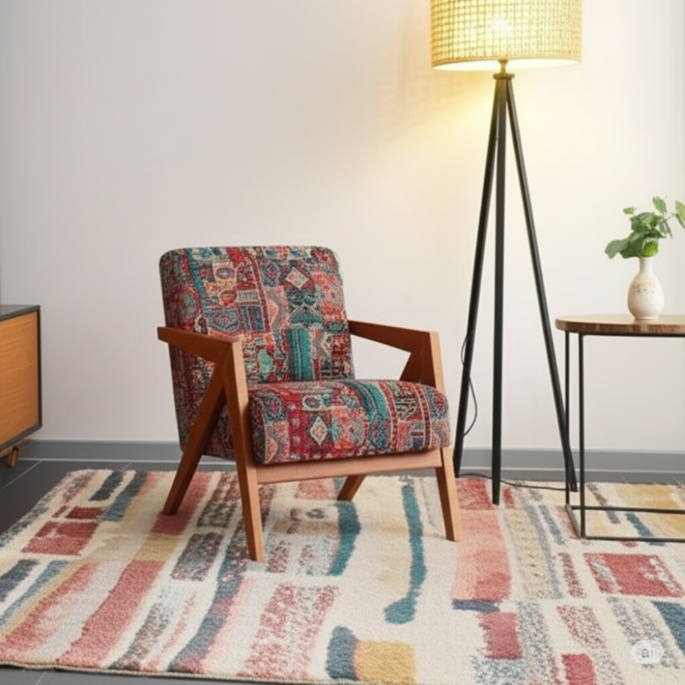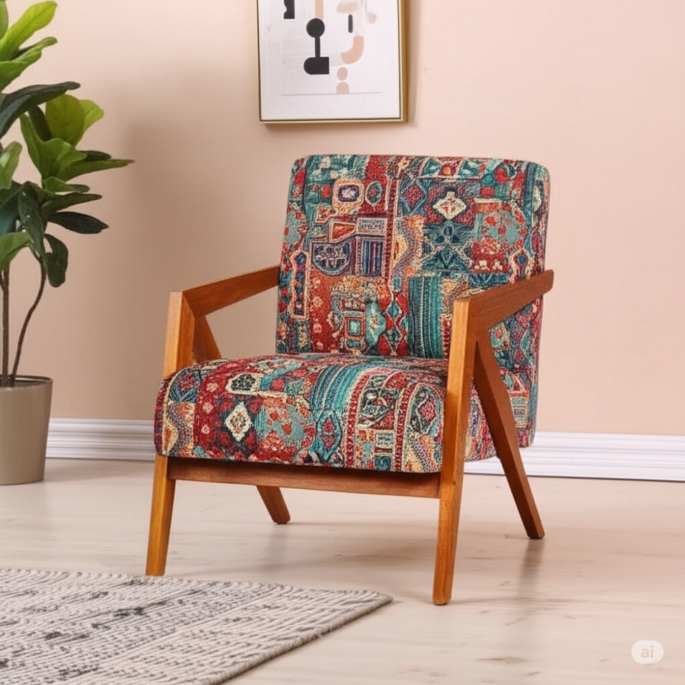 ارتقِ بديكور منزلك مع كرسي الاسترخاء الفريد هذا، المصمم ليضفي لمسة من الدفء والأصالة على أي زاوية. يتميز الكرسي بتصميمه العصري الذي يجمع بين أناقة الخشب الطبيعي ونقوش الأقمشة التراثية المتقنة، مما يجعله قطعة فنية بحد ذاتها. الألوان الزاهية والأنماط الهندسية الغنية تروي قصةً من الإبداع، وتدعوك للاستمتاع بلحظات من الراحة والاسترخاء المطلق.