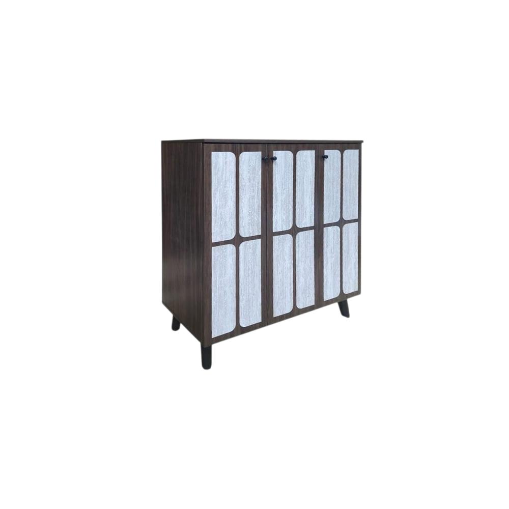 اكتشفوا الحل الأمثل لتنظيم أحذيتكم مع هذه الخزانة الأنيقة ذات التصميم العصري الذي يضفي لمسة من الجمال على أي مكان. تتميز الخزانة بهيكل خشبي متين بلون بني داكن، يتناغم بشكل مثالي مع واجهتها المزخرفة بألواح بيضاء أنيقة.