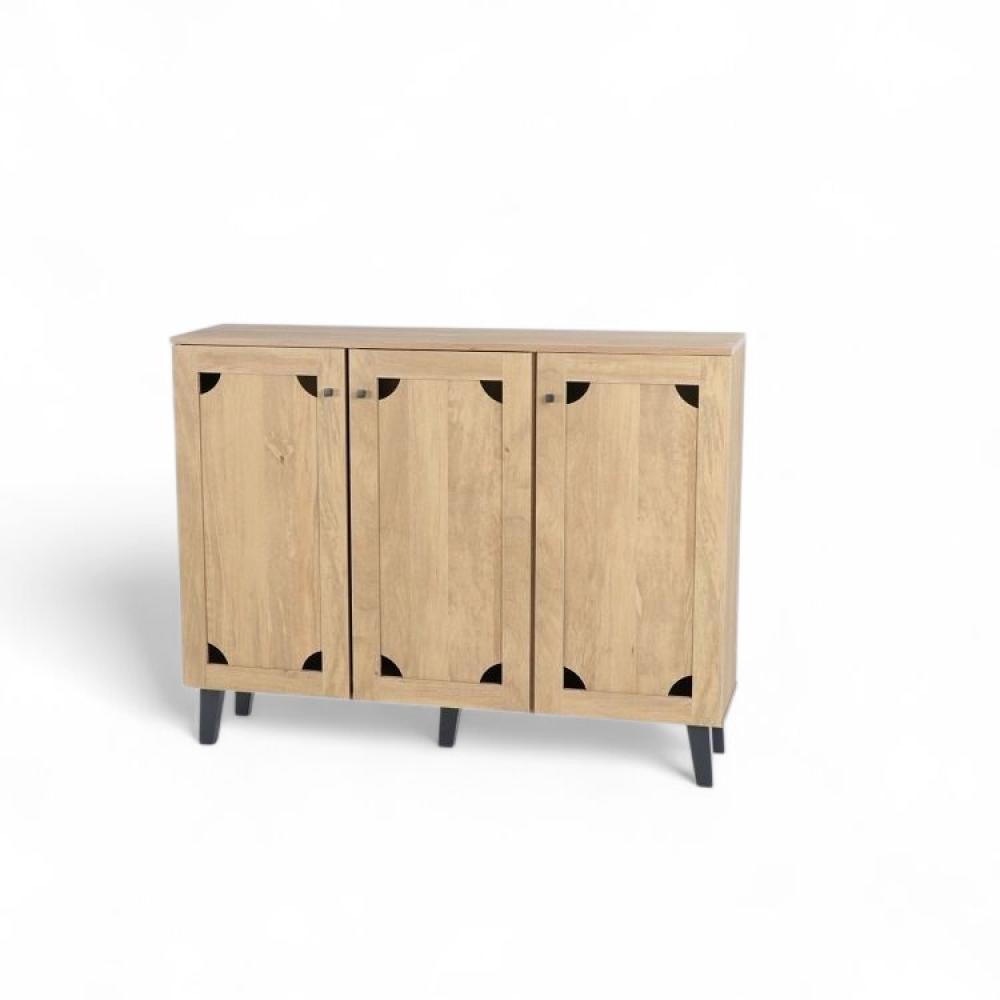 أضف لمسة من الأناقة والعملية إلى منزلك مع وحدة التخزين الخشبية هذه. تتميز بتصميمها العصري باللون الخشبي الدافئ، وأرجلها المعدنية السوداء التي تضفي عليها لمسة فخامة. تأتي الوحدة بأبواب مزودة بمقابض أنيقة، وتفاصيل منحنية مميزة على الأبواب تضفي عليها طابعًا فريدًا. مثالية لتخزين الكتب، الأواني، أو أي أغراض أخرى، مما يساعد على الحفاظ على منزلك مرتبًا ومنظمًا.