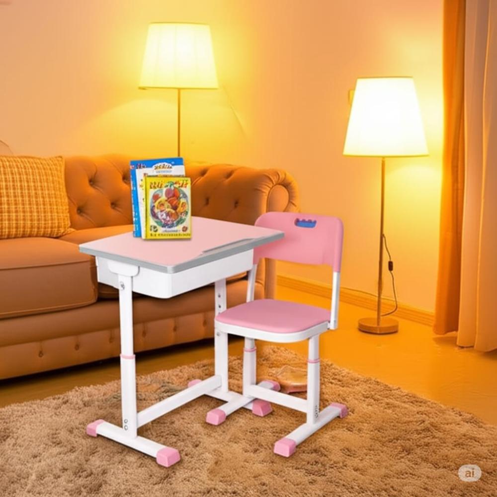 مكتب وكرسي دراسي للأطفال - لون وردي أنيق